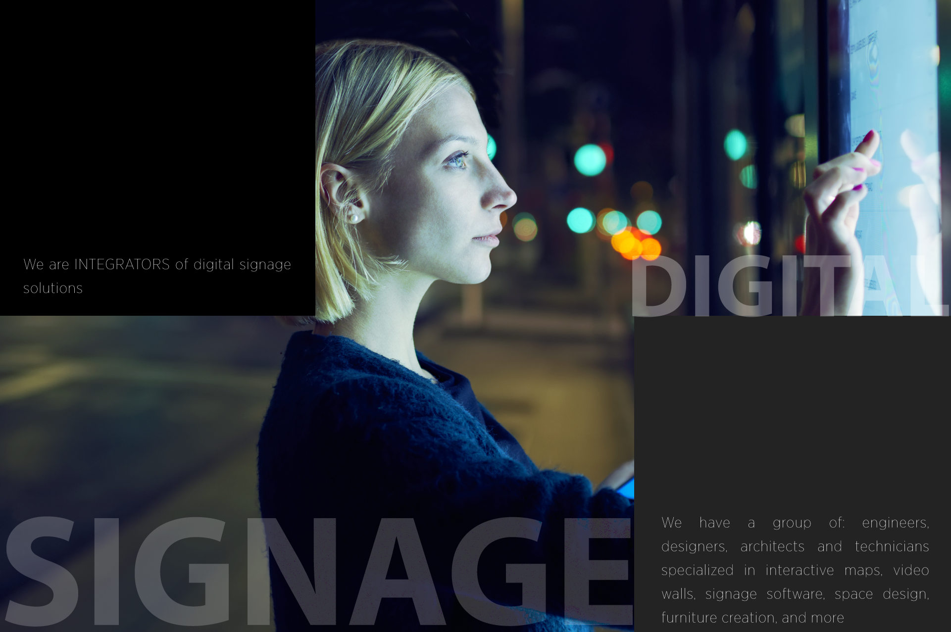 We are experts in digital signage, we have extensive experience in conventional, irregular video walls and even with personalized interactivity.